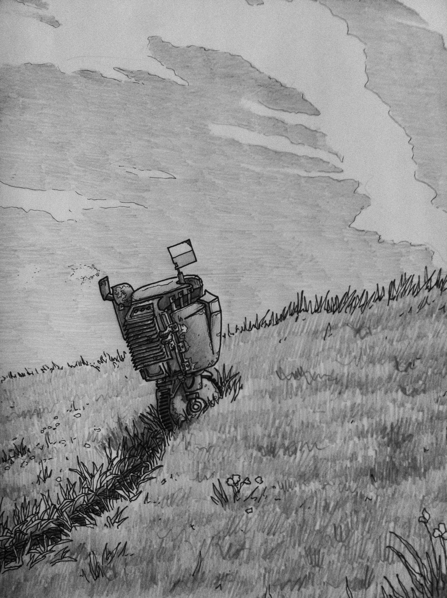 It was also being watched. On a distant hill there stood a girl with binoculars. The lenses were focused on the small machine as it rolled through the grass. After a while the girl lowered the binoculars and closed her eyes, tilting her head slightly as if she were listening to something. Her unkempt black hair blew across her face, but she paid it no mind. She was so still that anyone watching might have thought her asleep.